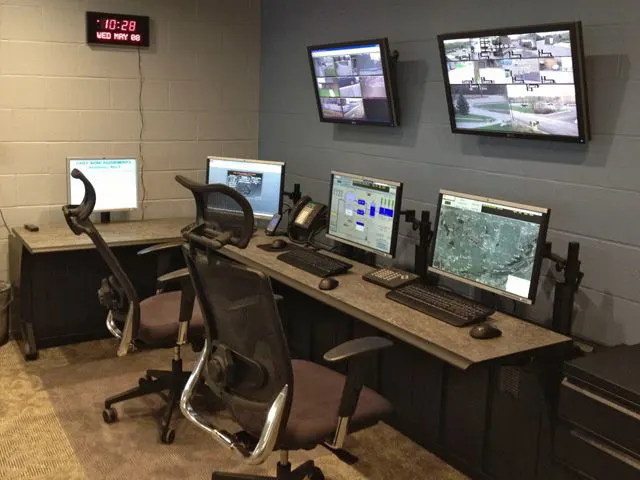 The City chose an ergonomic control room console from the Winsted Corporation that provides enough workspace for several operators to work simultaneously. Winsed’s Insight Consoles provide flexible monitor display options, smart equipment and cable management, and easy access to data/power, making it possible to maximize the amount of workspace for operators. “When we started researching new consoles online, ergonomics and adjustability were our primary focus,” said Ketchmark. “The flexibility of the Winsted console design allowed us to mount more monitors to the console and put larger monitors on the wall without sacrificing operator comfort.”