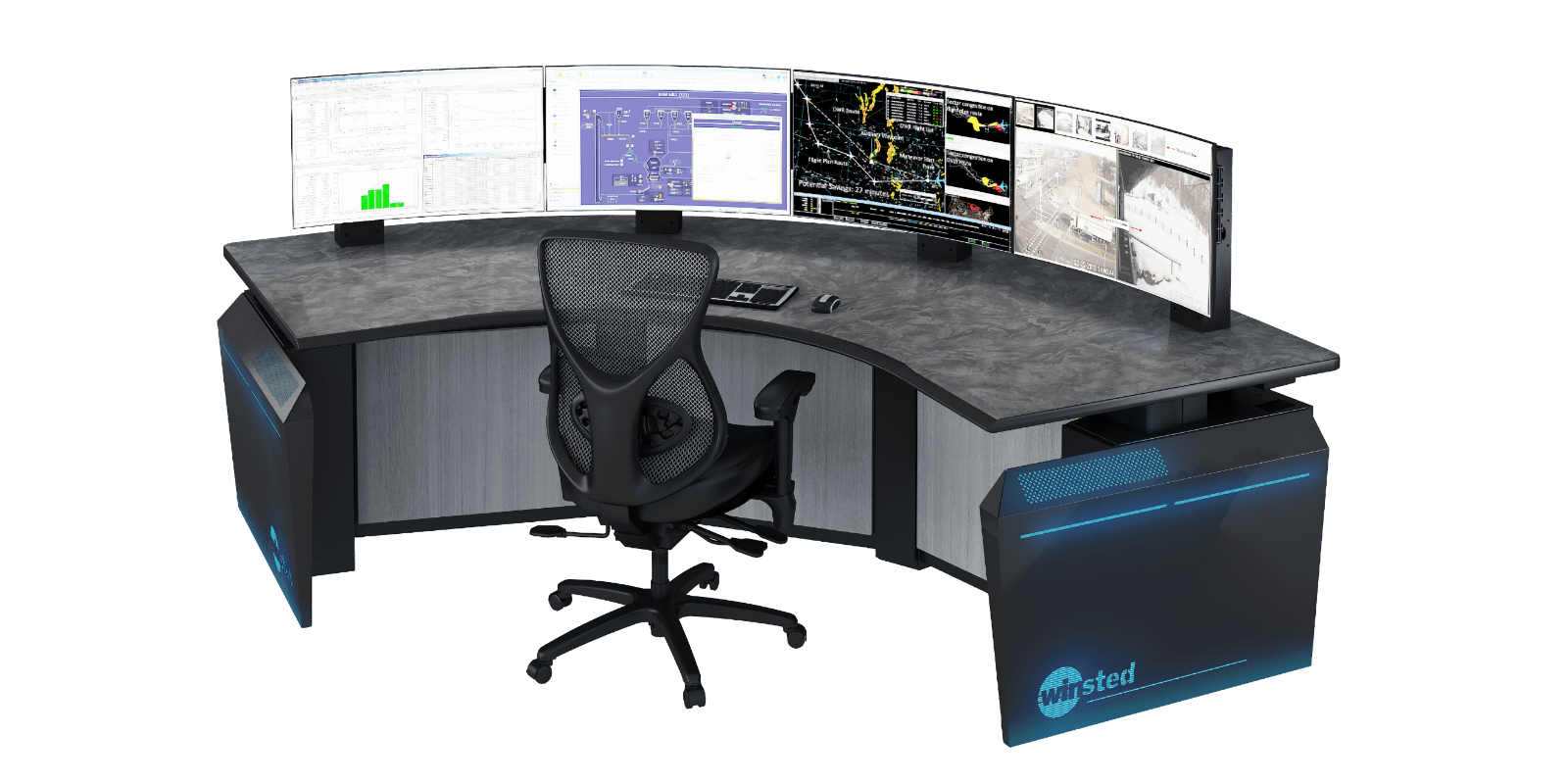 Our control room solutions are engineered to meet the demands of mission-critical environments, combining robust structural integrity with modular flexibility and advanced cable management. Designed for seamless integration of IT, OT, AV, and communication systems, these ergonomic workstations optimize operator efficiency, ensure 24/7 reliability, and adapt to evolving technology requirements. Each product incorporates specialized features to address the complex challenges of next-generation control rooms. By overcoming these challenges, we empower operators to recognize abnormal conditions more quickly, respond faster to upset scenarios, enhance operational safety, safeguard critical assets, and minimize environmental impact.